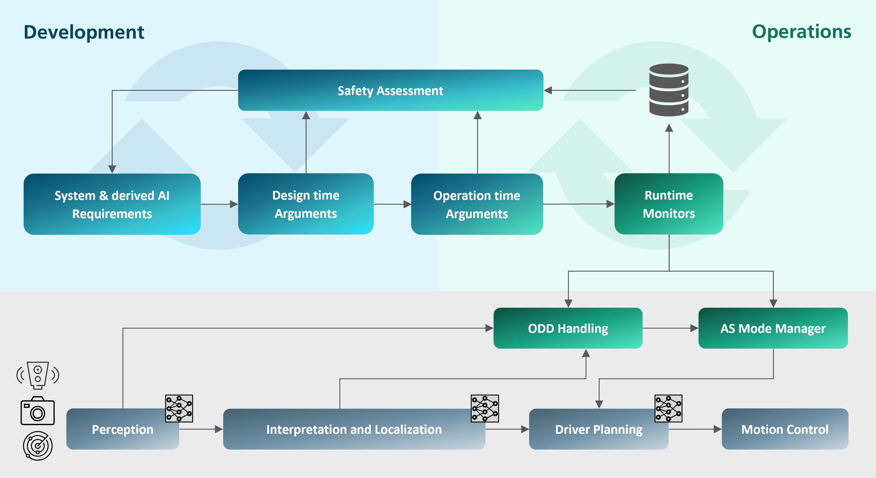 - Continuous safety assurance in operation: Assumption and SPI monitoring, early mitigation, root cause analysis, safe OTA updates.